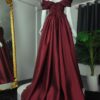 The Crimson Empress dress embodies elegance and drama, with its luxurious red satin fabric and flowing skirt. Its off-shoulder design adds a touch of modern glamour, making it the perfect choice for bold, sophisticated occasions.