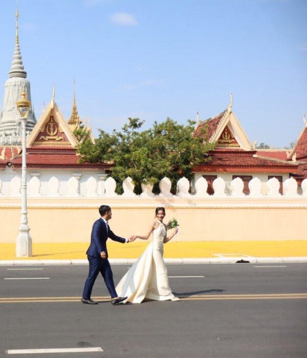 Radiate elegance with Golden Serenade—a satin masterpiece designed to dazzle. Its lustrous golden hue, halter neckline, and draped silhouette create a luxurious look reminiscent of timeless Hollywood glamour. Perfect for brides and evening occasions where sophistication and splendor are paramount.