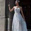 Tags: A-line silhouette, boho romance style, Cambodia boutique, custom made couture, delicate corsetry look, destination wedding dress, elegant timeless design, ethereal bridal look, floral lace applique, flowy chapel length, inclusive sizing available, ivory tulle dress, lightweight summer gown, minimalist modern bride, outdoor ceremony gown, sheer overlay skirt, soft shimmer details, strapless lace wedding dress, sweetheart neckline gown, worldwide shipping included