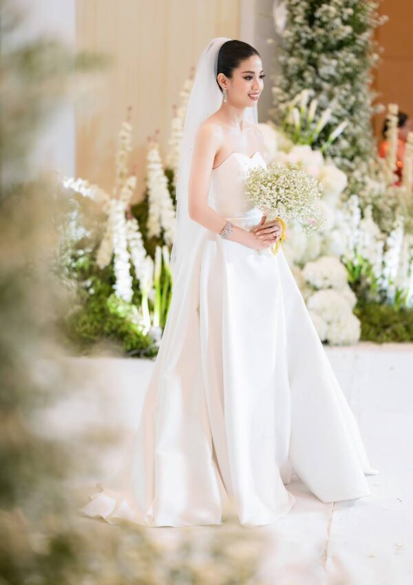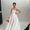 Step into pure elegance with Widdia Bliss, a timeless white strapless A-line wedding dress that embodies grace and simplicity. Crafted from luxurious satin, this gown features a structured bodice that beautifully enhances the neckline, providing a flattering and sophisticated look. The voluminous A-line skirt flows effortlessly, offering a classic bridal silhouette that exudes romance. Perfect for traditional weddings, garden ceremonies, or modern indoor events, Widdia Bliss is designed to make you feel radiant on your special day.